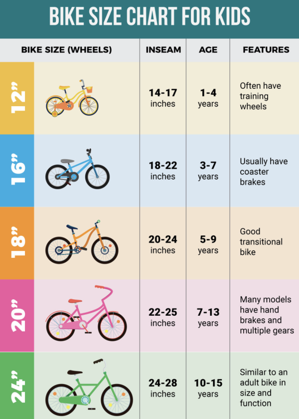 | Вік дитини | Довжина ноги, см | Довжина ноги, дюйми | Розмір рами | Розмір колеса |